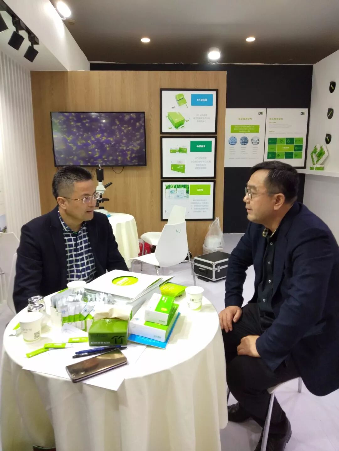 在本届双品汇上,一然生物精心打造了一个以绿色微生物为主色调的展馆,展馆以“微生物之旅”为主题,在设计中巧妙利用各种微生物益生菌菌株形象,营造出十足的科技感及现代感。展馆内部利用LED屏幕连接显微镜呈现出益生菌图像,让参观宾客更为深入的了解益生菌,并传达出一然生物“微生态改善大生态”的企业使命。另外,一然生物还将两只生动可爱的益生菌玩偶带到了现场,深受各位宾客的喜爱。